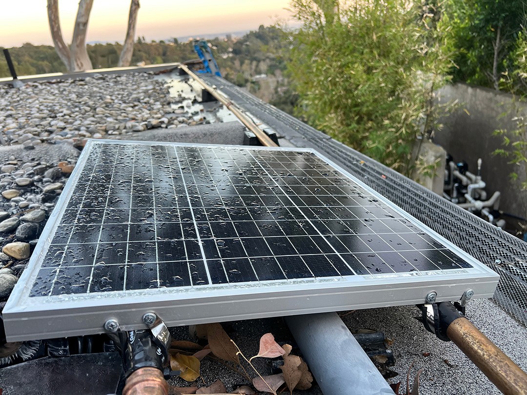 FireShield operates independently of grid power. An integrated battery system keeps the unit running during outages, and an optional solar panel helps maintain charge—so protection remains active even when electricity is unavailable.
